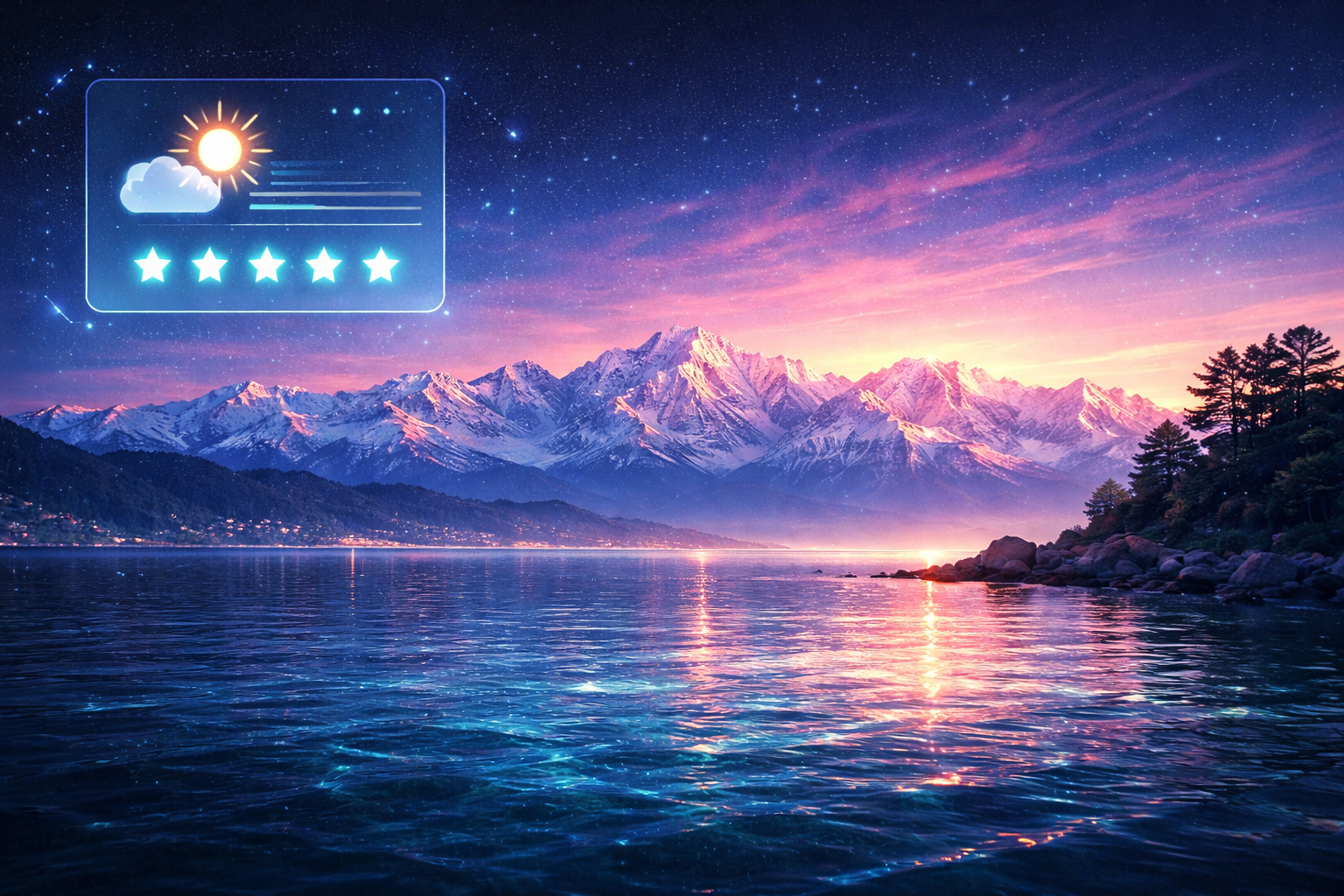 目的: 「今日見える?」という最大の関心事にデータで答える。ライブカメラ+気象予測の組み合わせ。
