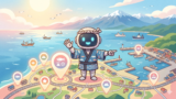 Mapbox GL JSのterrain機能で標高データを3Dメッシュ化し、カメラをアニメーションで移動させることでフライト体験を実現しています。flyToメソッドのパラメータ(ピッチ・ベアリング・速度)を調整し、なめらかな飛行感覚を出しました。プリセットルートは氷見の代表的な観光スポットを巡るコースを複数用意しています。